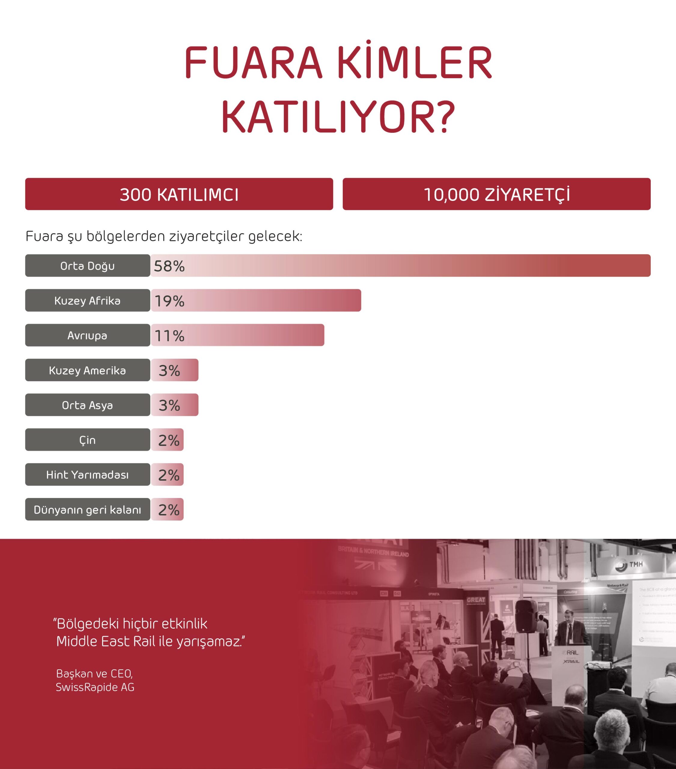 18. yılında olan Middle East Rail, bölgenin en önemli demiryolu, teknoloji ve yük taşımacılığı altyapı etkinliği olarak geniş bir şekilde kabul edilmektedir.